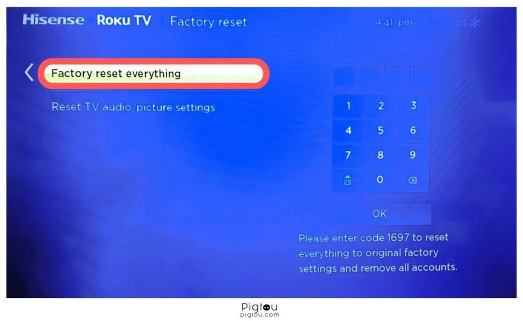 清除海信 Roku 電視上的緩存/圖片:Pigtou.com