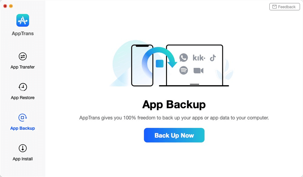 如果您在 Google Drive 或 iCloud 上沒有足夠的空間,那麼 AppTrans 就來了。它可以幫助您一鍵備份、恢復和傳輸手機上您想要的所有或任何應用程序和應用程序數據。 AppTrans有以下主要特點: