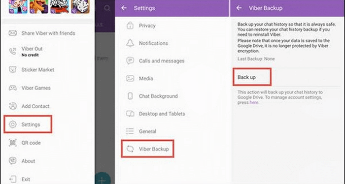 如果您不滿足於將 Viber 消息導出為 PDF,Android 系統為您提供了一些可行的選擇。要在兩個 Android 設備之間傳輸數據,您只需使用 Viber 應用程序中的備份和恢復功能即可。此方法要求您擁有個人 Google 帳戶和有效的互聯網連接,但除此之外,它非常簡單直觀。
