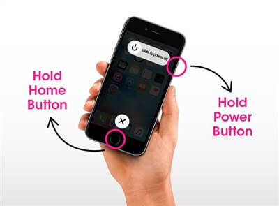 - 如果您使用的是 iPhone 6/6 +/6s/6s + 或更早型號,則需要按住主頁按鈕和睡眠按鈕至少十秒鐘,直到出現 Apple 徽標。
