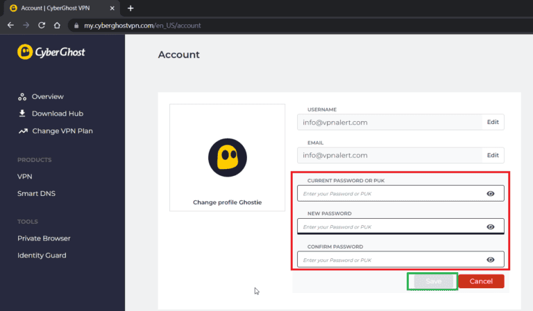 以下是更改 CyberGhost 帳戶密碼的方法: