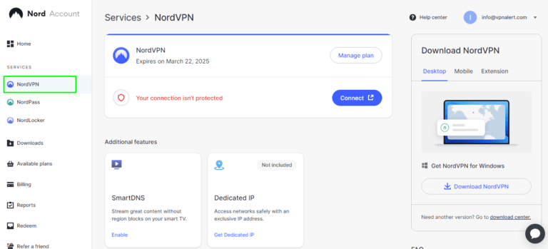- 登錄您的北VPN 帳戶儀表板在您的瀏覽器上。