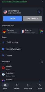 - 連接到可使用 Qobuz 的 25 個國家/地區之一的服務器。就我而言,我選擇了美國。