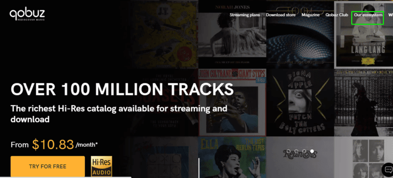 - NordVPN 處於活動狀態時,單擊“我們的生態系統” 上Qobuz 網站主頁。