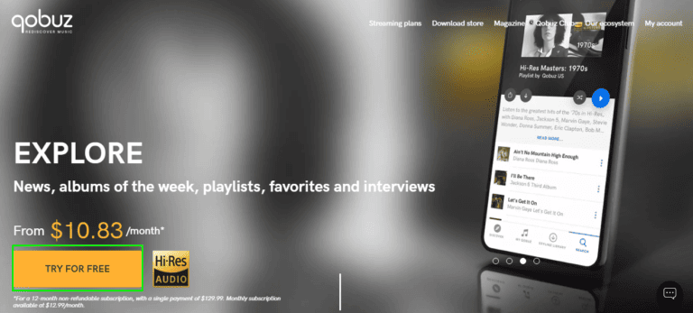 - 打開Qobuz網站並點擊“免費試用” 來報名。