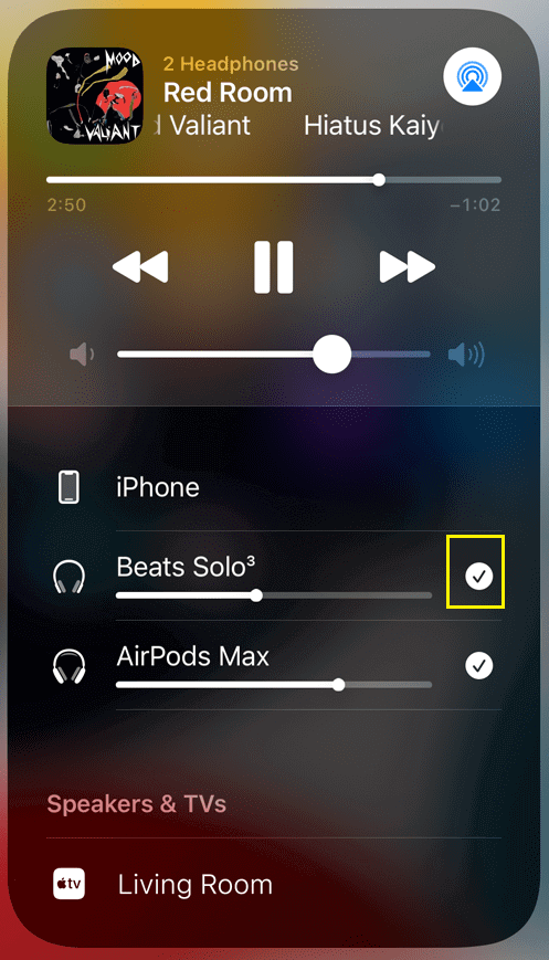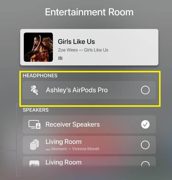 4. 選擇您的AirPods從可用設備列表中並將它們用作音頻輸出。