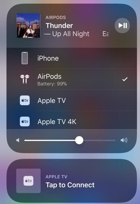 現在您可以使用 AirPods 聆聽這首歌。如果您的設備未在使用中,您可以關閉 iPhone 上的 AirPlay。