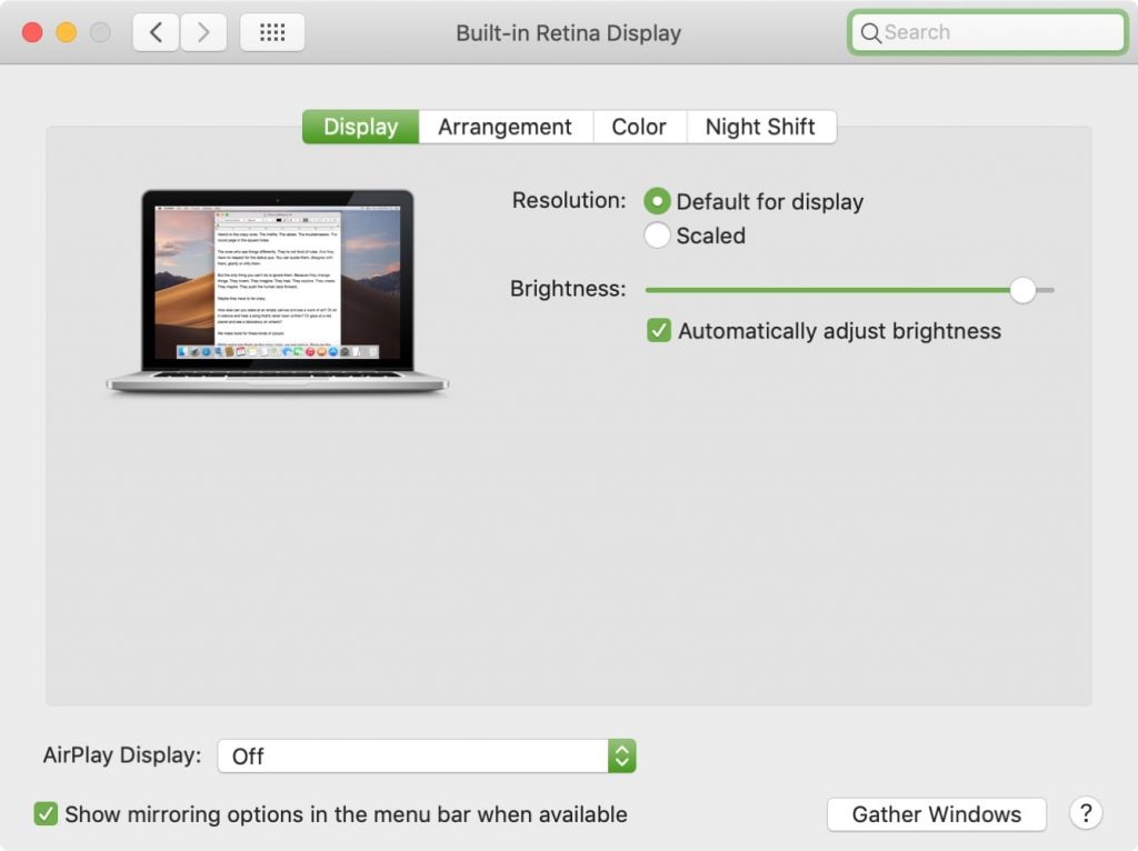 3. 接下來,選擇展示選項卡並標記在菜單欄中顯示鏡像選項(如果可用)複選框。