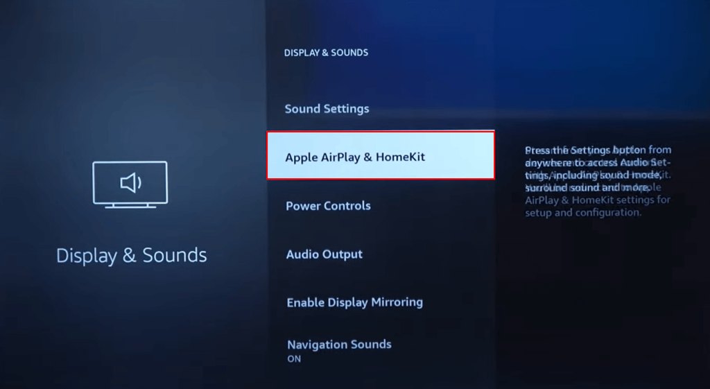 3. 切換按鈕並打開 Fire TV 上的 AirPlay。