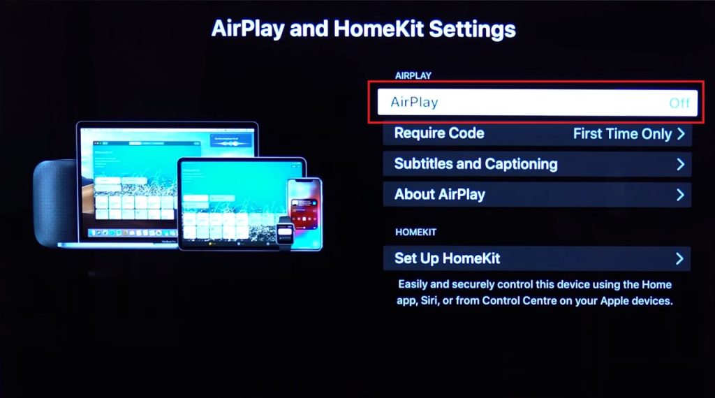 2. 單擊Airplay 和 HomeKit並選擇隔空播放選項。