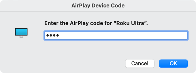5. 在 Mac 上輸入 AirPlay 代碼,將 Mac 屏幕鏡像到 TCL Roku 電視。