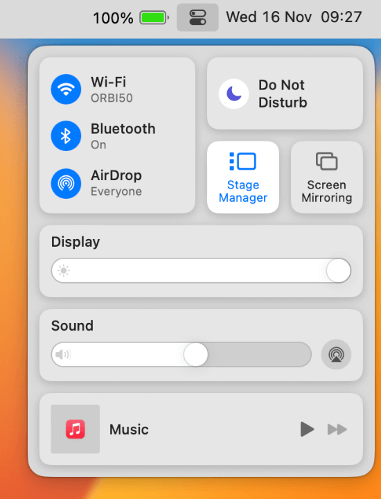 2. 點擊隔空播放Mac 設備頂部菜單欄中的圖標。
