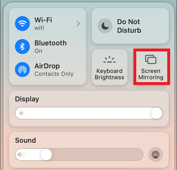 4. 現在,單擊控制中心圖標並選擇屏幕鏡像選項。