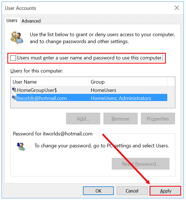 尖端:如果您想禁用自動登錄功能,請按照相同的方式勾選“用戶必須輸入用戶名和密碼才能使用這台計算機”。