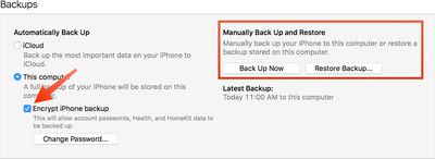 - 要加密您的備份,請選擇加密本地備份,輸入密碼,然後單擊設置密碼。