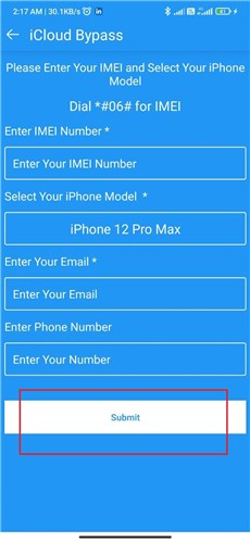 使用IMEI iCloud解鎖免費應用程序非常簡單,因為您只需要輸入與您的iPhone相關的信息,例如型號、IMEI號碼、電子郵件地址等。一旦您提交了數據,他們將嘗試為您解鎖iPhone。以下是使用它通過 IMEI 解鎖 iCloud 的步驟。