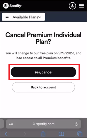 不,不幸的是,取消Spotify Premium訂閱的選項無法通過移動應用程序獲得。您需要使用移動瀏覽器訪問官方網站,並按照我們指南中詳細介紹的取消步驟。