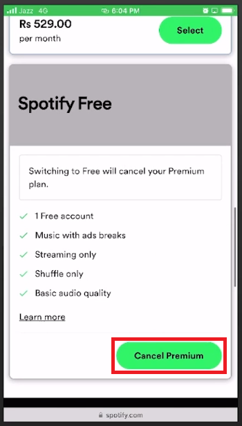 導航到訂閱設置:在“帳戶概述”部分中,您將找到現有計劃的詳細信息以及修改它的選項。單擊以擴展Spotify Premium計劃的列表。仔細滾動瀏覽選項,直到確定“免費Spotify”類別為止。毫不猶豫地選擇“取消溢價”以將取消取消的步伐更近。
