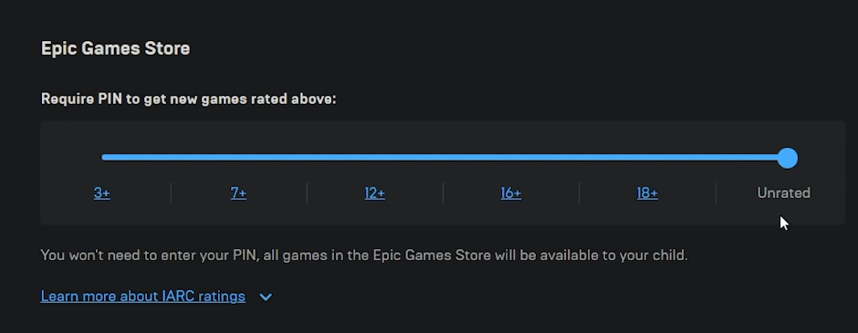 此過程允許您自定義對 Epic Games Store 上游戲的與年齡相關的訪問權限。