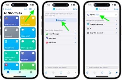 - 輕敲添加動作,然後使用文本字段搜索打開應用程序。