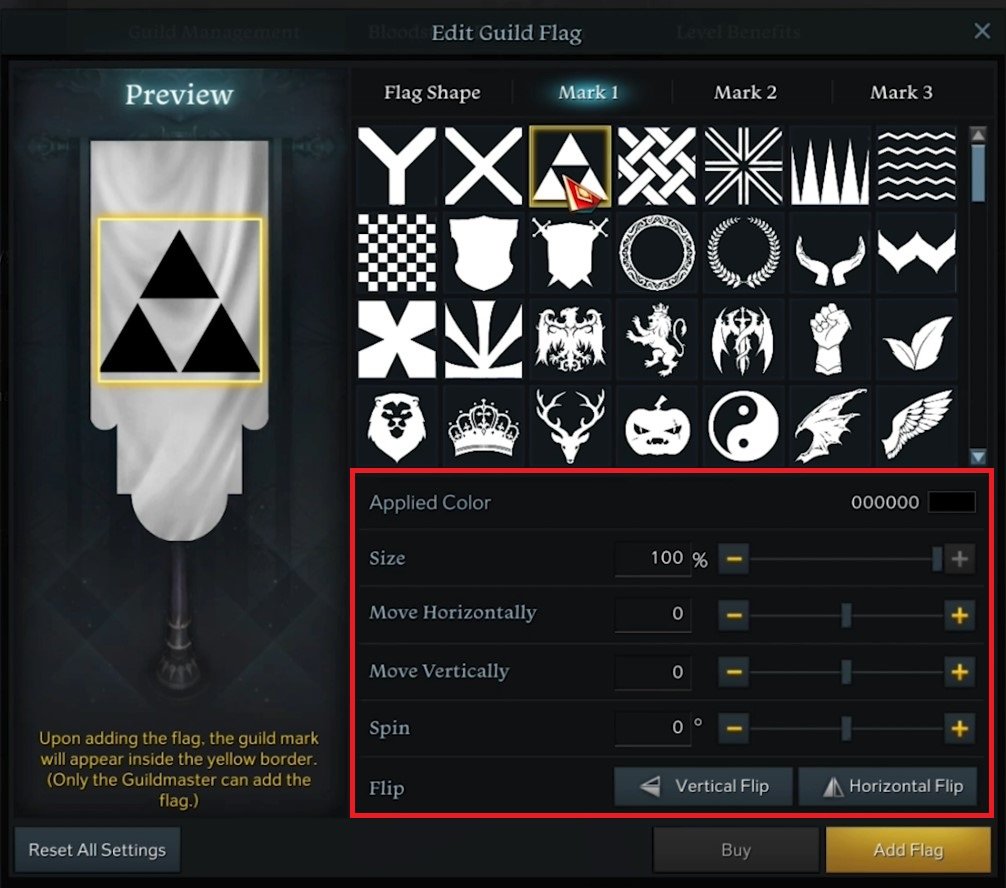 點擊後添加標誌,您的公會旗幟將被更改,無需額外費用。