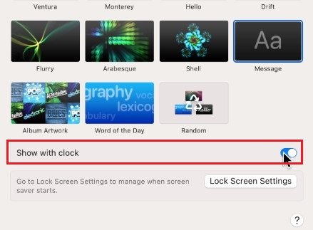 您還可以選擇在每次觸發時顯示隨機屏幕保護程序。啟用帶時鐘顯示如果您希望在屏幕保護程序上看到數字時鐘,請選擇此選項。