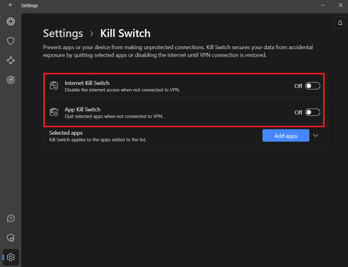 - 轉到您的 VPN 應用程序並啟用終止開關以防止 IP 地址洩漏。使用設置 > 終止開關 > 切換“互聯網終止開關”對於 NordVPN。