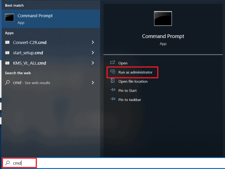 - 搜尋"命令提示符“ 或者 ”指令管理指令” 在您的 Windows PC 上。