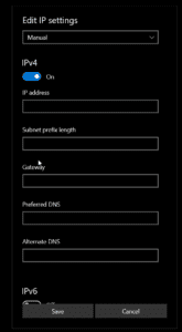 - 在下面 ”編輯 IP 設置,“ 選擇 ”手動的” 從下拉菜單中。