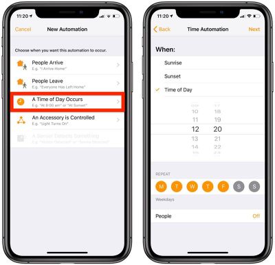 - 從屏幕選項中選擇時間和星期幾。您還可以點擊人們使自動化在某人在家的特定時間發生。