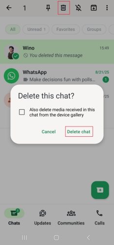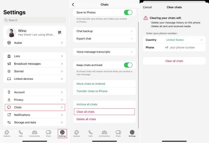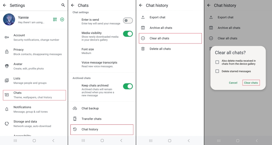 如果您想刪除所有 WhatsApp 消息,可以使用“清除所有聊天”功能。