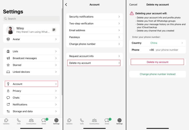 刪除 WhatsApp 中的個人帳戶不僅會從所有設備中刪除您的帳戶,還會刪除您的所有 WhatsApp 消息和備份。