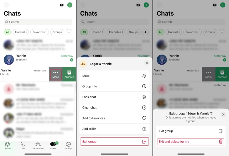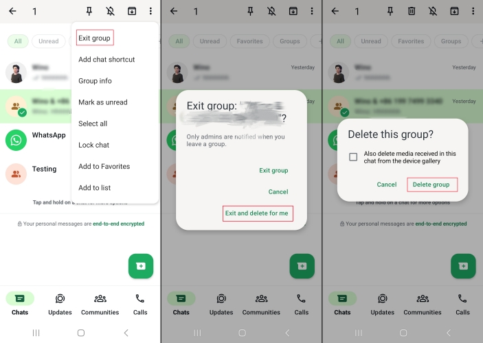 步驟 3.選擇退出並為我刪除刪除群聊的選項。