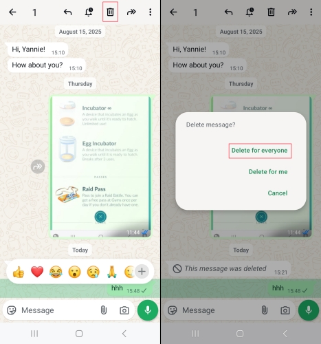 如果您發送了錯誤的文本、照片或語音留言,最好的選擇是“為所有人刪除”,它可以幫助您撤回已發送的消息。但是,當您使用“為每個人刪除”時,需要考慮一些重要事項。