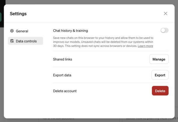 如何禁用 ChatGPT 聊天歷史記錄和訓練數據使用