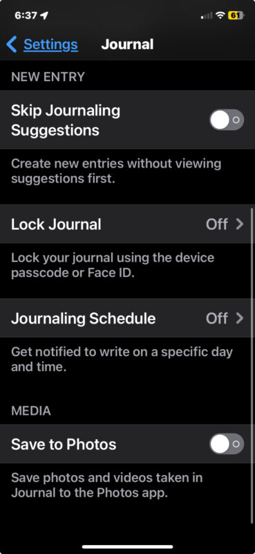 - 找到“跳過日記建議”開關並將其打開以禁用日記建議
