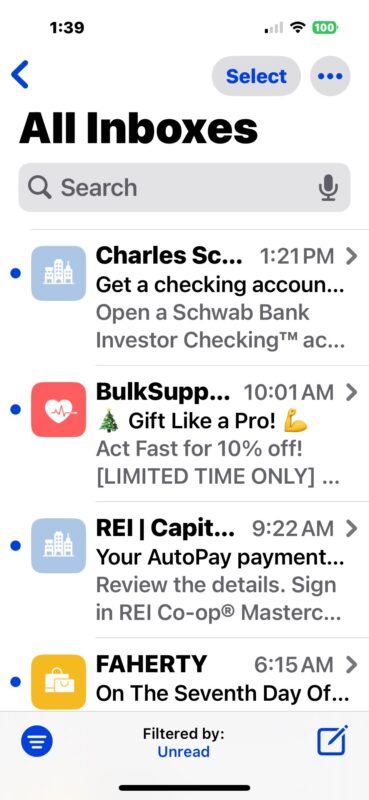 幸運的是,就像您可以禁用 iPhone 中引入的煩人的郵件類別功能一樣,您也可以禁用令人討厭的大而突出的郵件發件人圖標和聯繫人照片,使您的郵件收件箱再次更容易閱讀,將郵件恢復到自 iPhone 誕生以來基本相同的經典外觀。