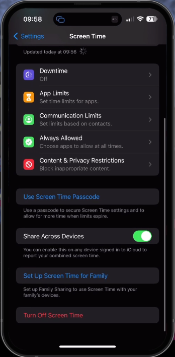 檢查您的設備或任何鏈接的 iCloud 設備上的 TikTok 是否有任何應用限制。如果是,您可以在設備設置中禁用它們。另外,請考慮禁用“跨設備共享”選項,以防止更改應用到所有連接的 iCloud 設備。
