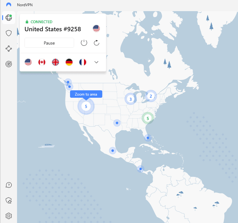 - 您將登錄適用於 macOS 的 NordVPN 應用程序。現在,單擊快速連接右上角的按鈕可連接到最近/最快的 NordVPN 服務器。
