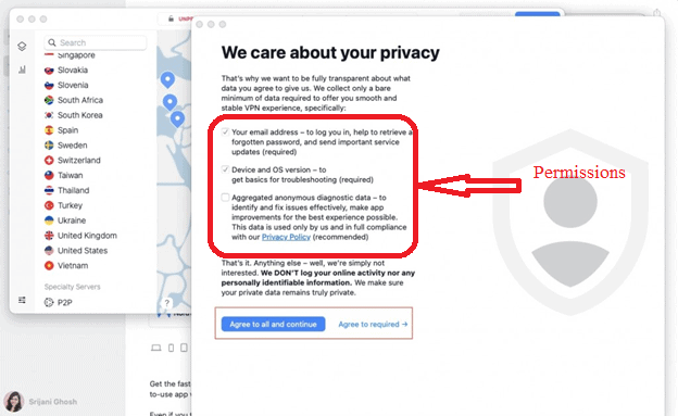 - 在彈出的隱私協議中,單擊“同意全部” 授予它列出的所有權限或“同意要求”選項僅授予特定權限。