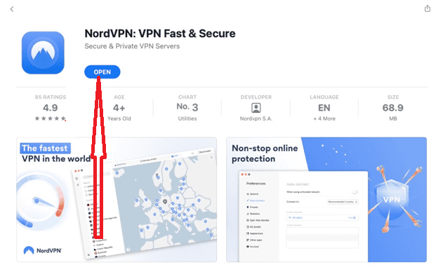 - 您將被定向到應用程序商店中的 NordVPN 應用程序。單擊“得到”按鈕進行下載。