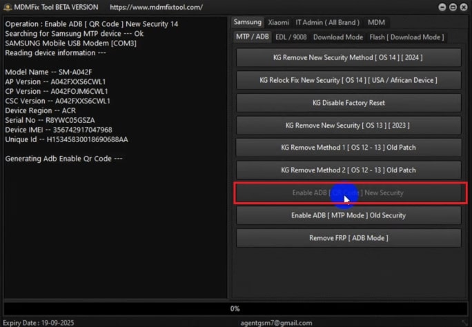 步驟 1. 首先在恢復模式下恢復您的手機,並將其連接到運行 MDM 修復工具的計算機。接下來,單擊啟用 ADB [QR 模式] 新安全性按鈕繼續。