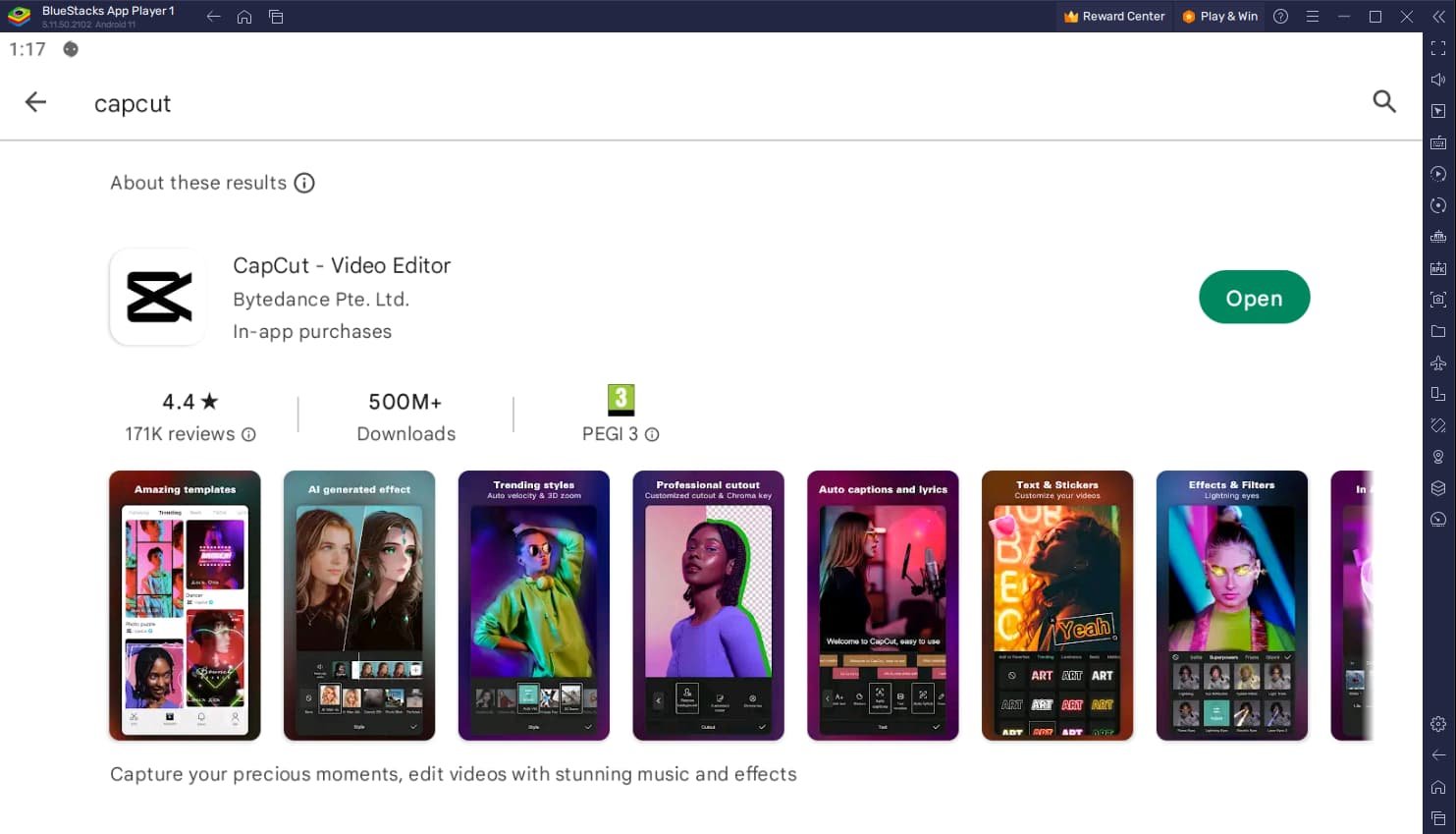 成功安裝 BlueStacks 後,下一步是下載 CapCut 以在您的 PC 上享受視頻編輯。過程如下: