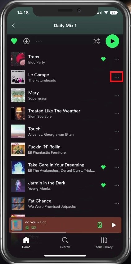首先,打開您的 Spotify 應用程序。如果 UI 看起來有點不同,請在 Google Play 或 App Store 中更新應用程序。從這裡導航到您要下載的歌曲。這可以是任何歌曲,但請確保您使用可靠的網絡連接。