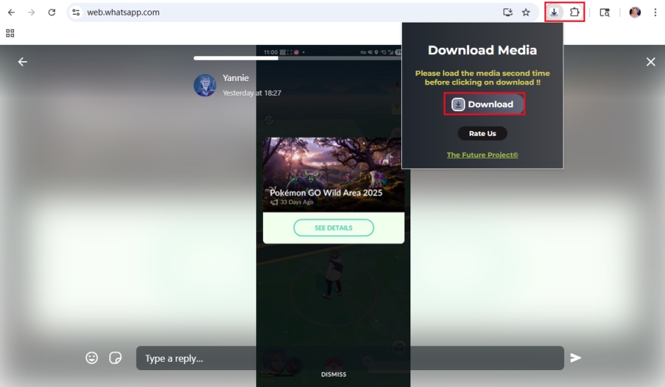步驟 4。單擊擴展圖標並單擊下載將狀態視頻下載到您的計算機。