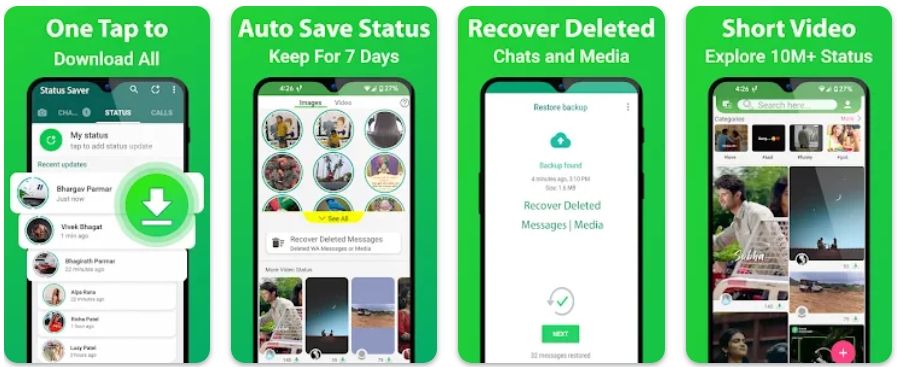 如果您想更高效地直接獲取 WhatsApp Status 視頻,那麼使用第三方應用程序將是您更好的選擇。有很多應用程序可用於保存 WhatsApp 狀態視頻。您可以下載 WhatsApp Status 保存程序應用程序來保存 WhatsApp Status 視頻或照片。這裡我們嘗試了一些 WhatsApp Status 保存程序,您可以作為參考。了解更多詳細信息第 4 部分。操作非常簡單: