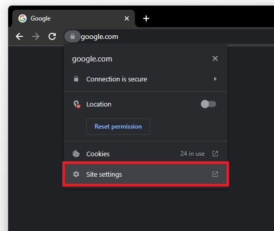如果禁用彈出選項後您仍然看到來自網站的彈出窗口,則您可能仍然訂閱了該頁面的通知。要禁用這些彈出窗口,請導航到您從中獲取通知的站點,然後單擊 URL 旁邊的鎖定圖標。選擇站點設置。