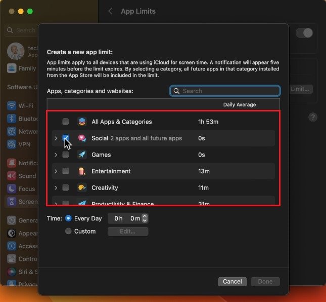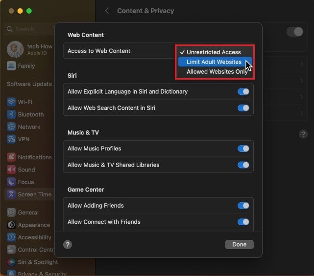 是的,您可以在 Mac OS Ventura 上為不同的用戶帳戶設置不同的限制。您所需要做的就是按照步驟為每個用戶帳戶啟用家長控制並選擇您要應用的限制。