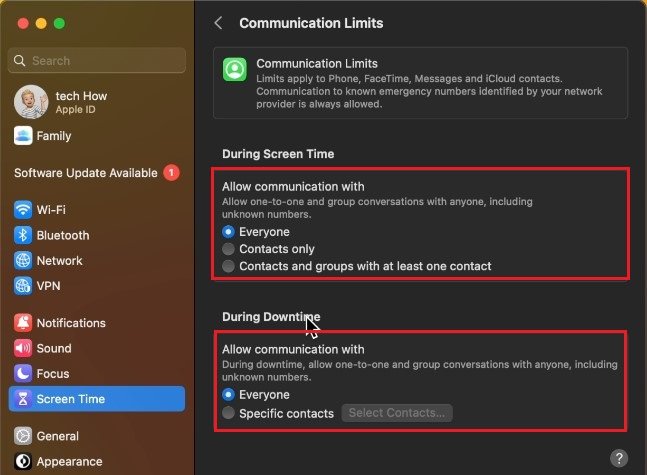 你的Mac溝通限制對於防止您的孩子在互聯網上與隨機的人聯繫或被隨機的人聯繫具有重要意義。例如,您可以在啟用屏幕時間或啟用停機時間時設置限制,並且您只希望您的孩子在學習時能夠與家人溝通。