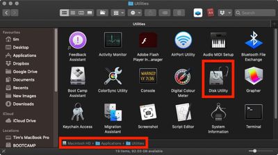 - 發射磁盤工具,位於 Mac 上的應用程序/實用程序。